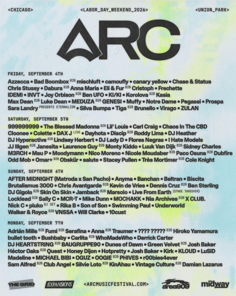 ARC Music Festival – Chicago’s flagship house and techno event – has unveiled its 2026 line-up and announced an expansion to four days, returning Labor Day Weekend from September 4–7. Led by Auris Presents, the city’s leading force in festivals and events, ARC has become a global gathering point for electronic music’s most influential figures, emerging voices, and underground innovators, all set against the backdrop of Chicago – the birthplace of house music.